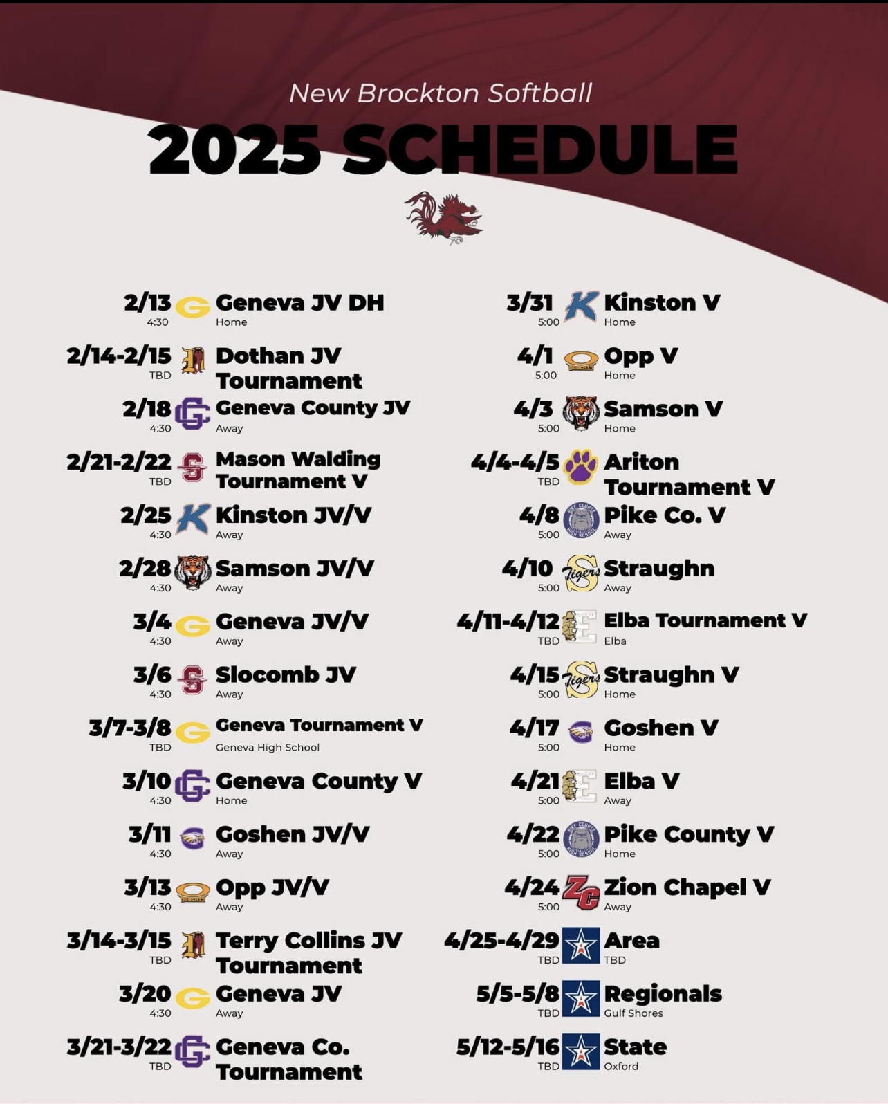 Click the link below for Softball Schedule 2025.